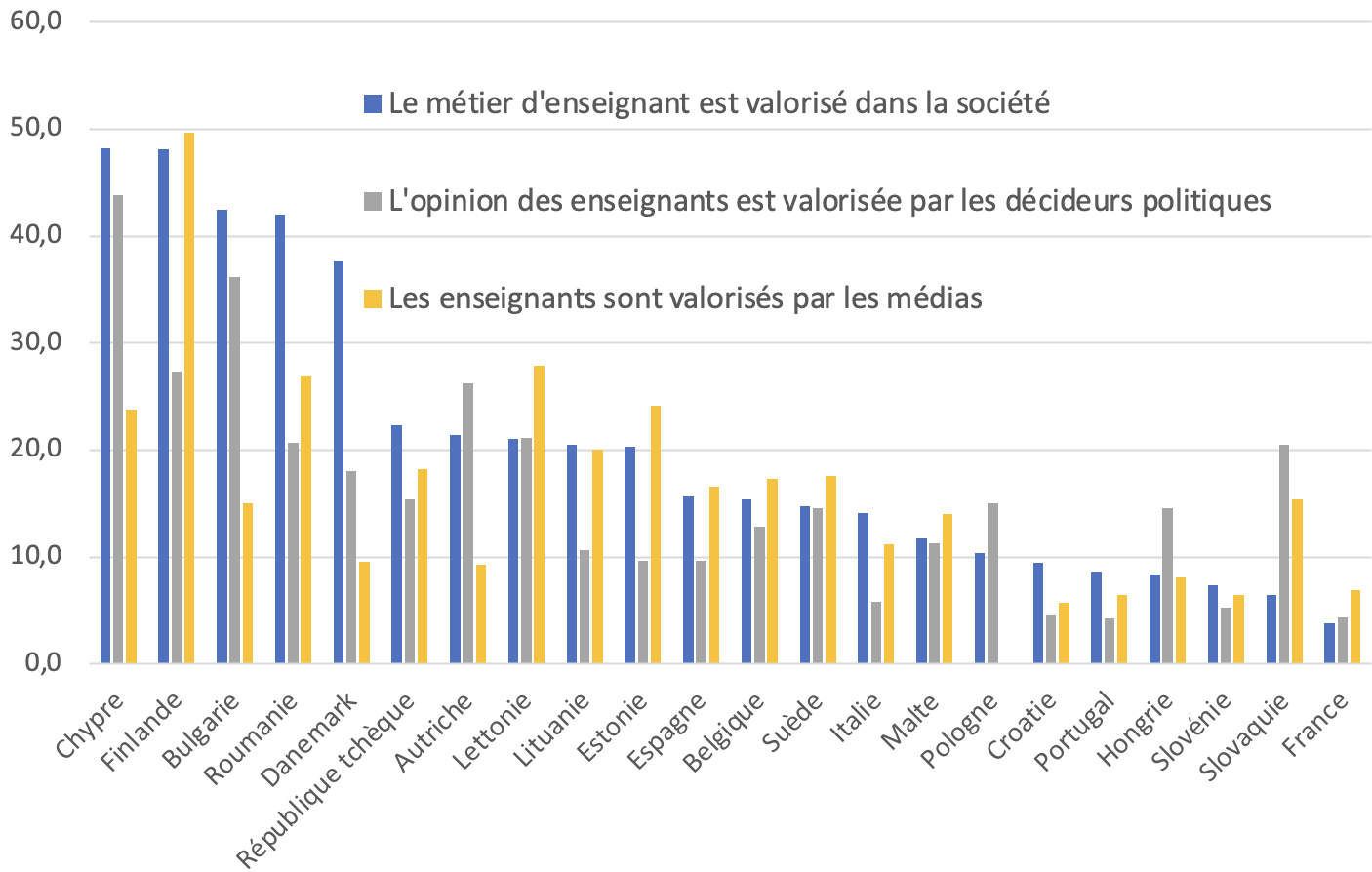 Figure 2. L’opinion des enseignants de collège sur la reconnaissance de leur métier (%)